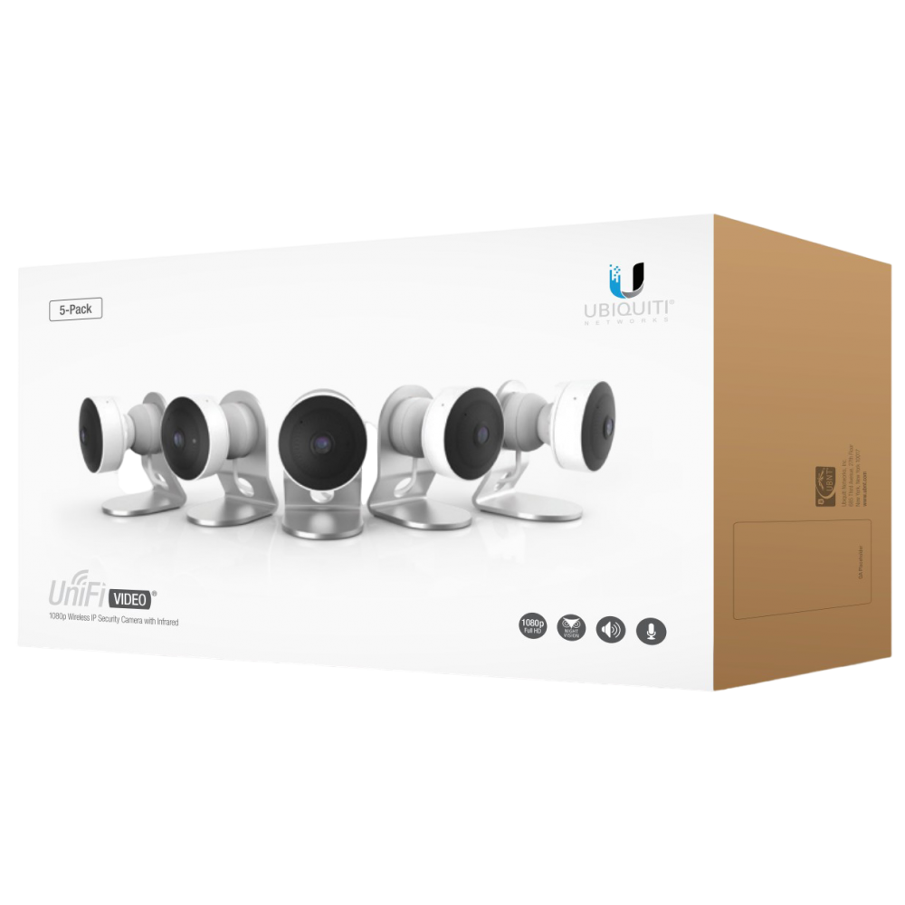 UniFi Video Camera G3 Micro 5-pack – набор из трех миниатюрных камер UniFi G3 Micro. Эти камеры прекрасно подойдут вам, если для вас важна компактность и качество работы. А присутствие в наборе сразу трех камер позволит сэкономить на упаковке и доставке, что положительно скажется на стоимости конечного проекта и делает приобретение данного пакета выгодным.